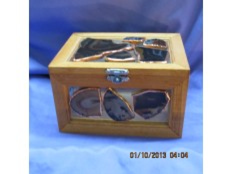 6.25x4.5" Wood/Glass Agate Jewelry Box